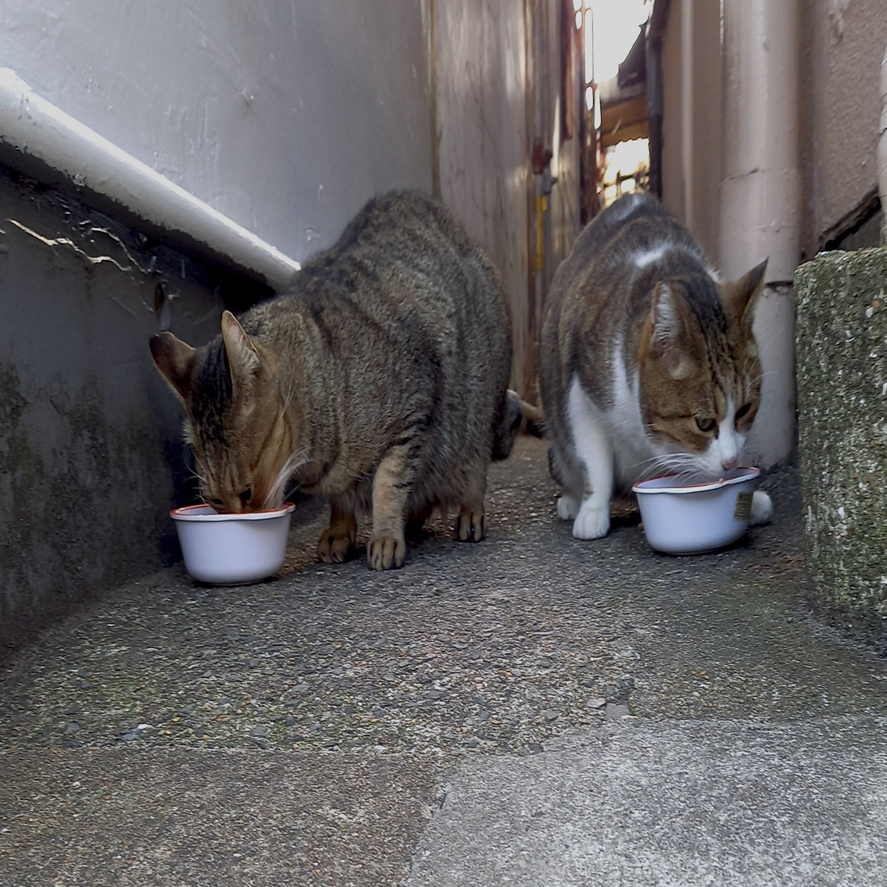 今日も滞りなく、外猫たちの朝食は終了(=^・^=)