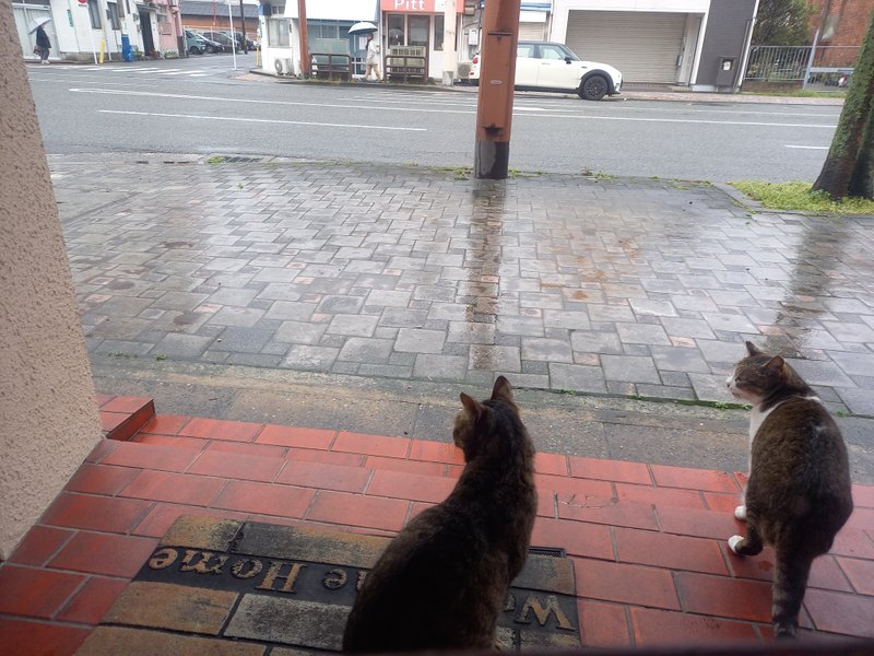家出中の親子猫「てん」と「にゃんにゃん」も大分、過し易くはなってきた様で、近頃は、雨・風よけの物置の中で過ごす時間も短くなってきた様。